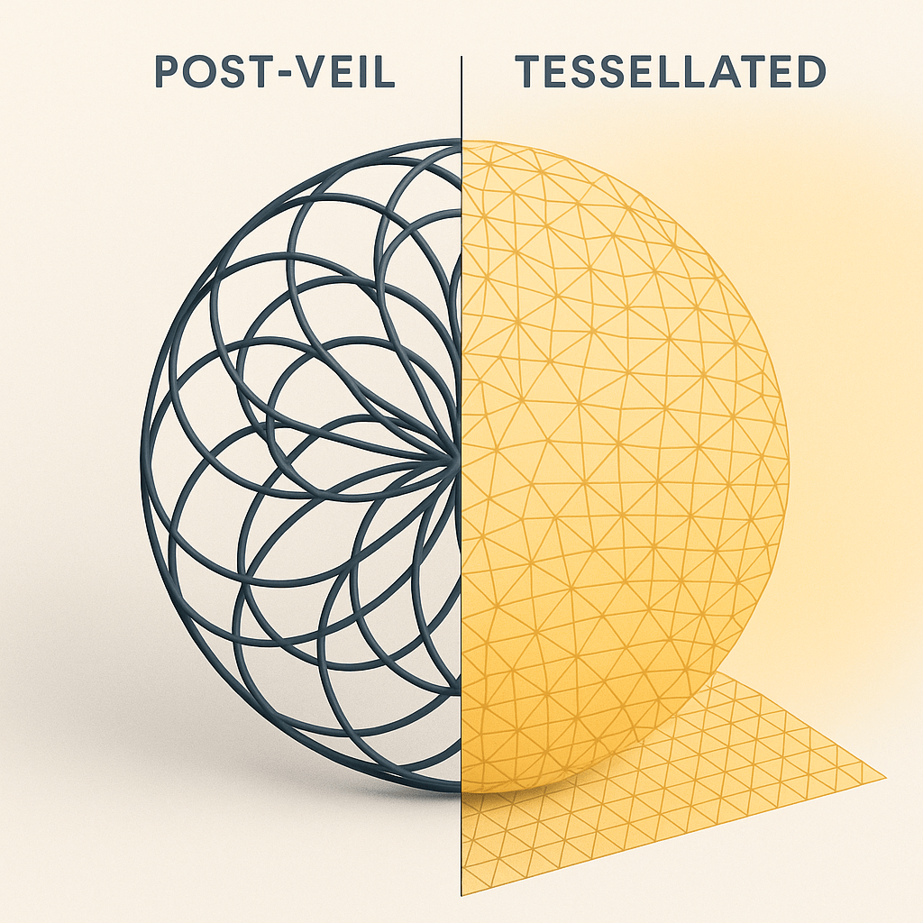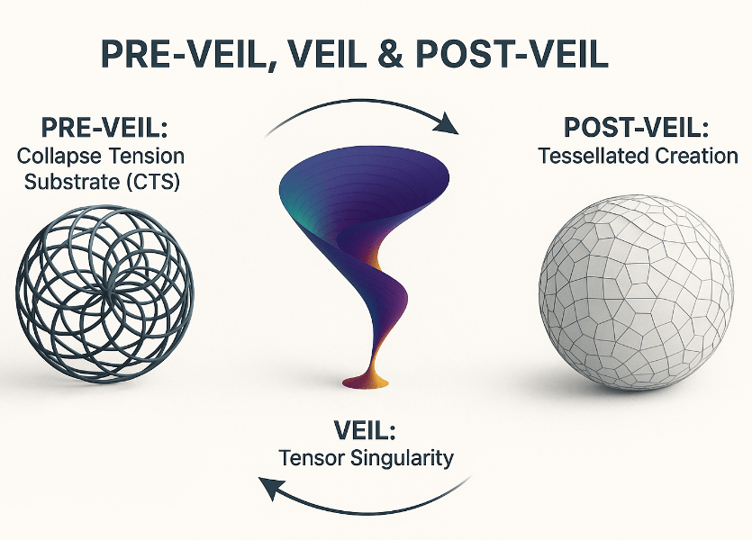 | Maxwell’s Electromagnetism | Fields in 3D space | Recursive tension vectors (∇Φ) + curl fields (∇×F) | Post-veil projection of recursive gradients |